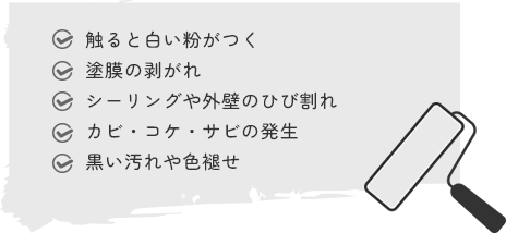 これらの劣化症状が外観に見受けられた場合は、塗替えが必要なサインです。